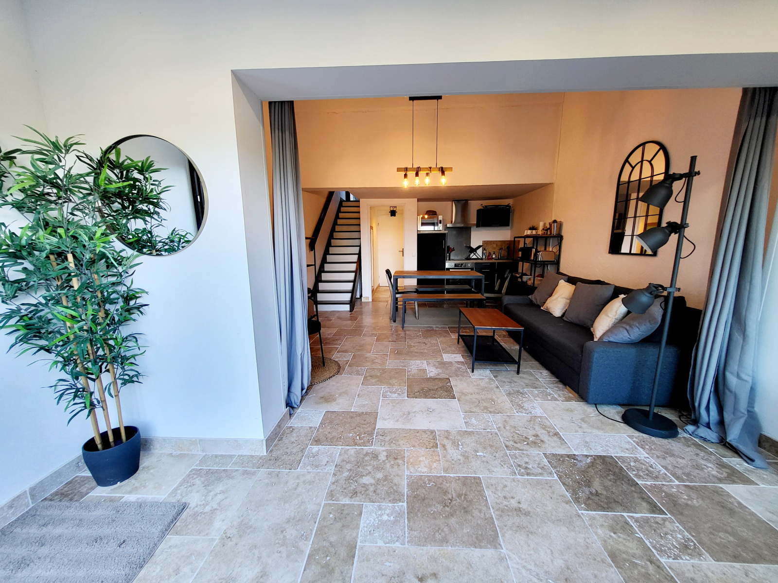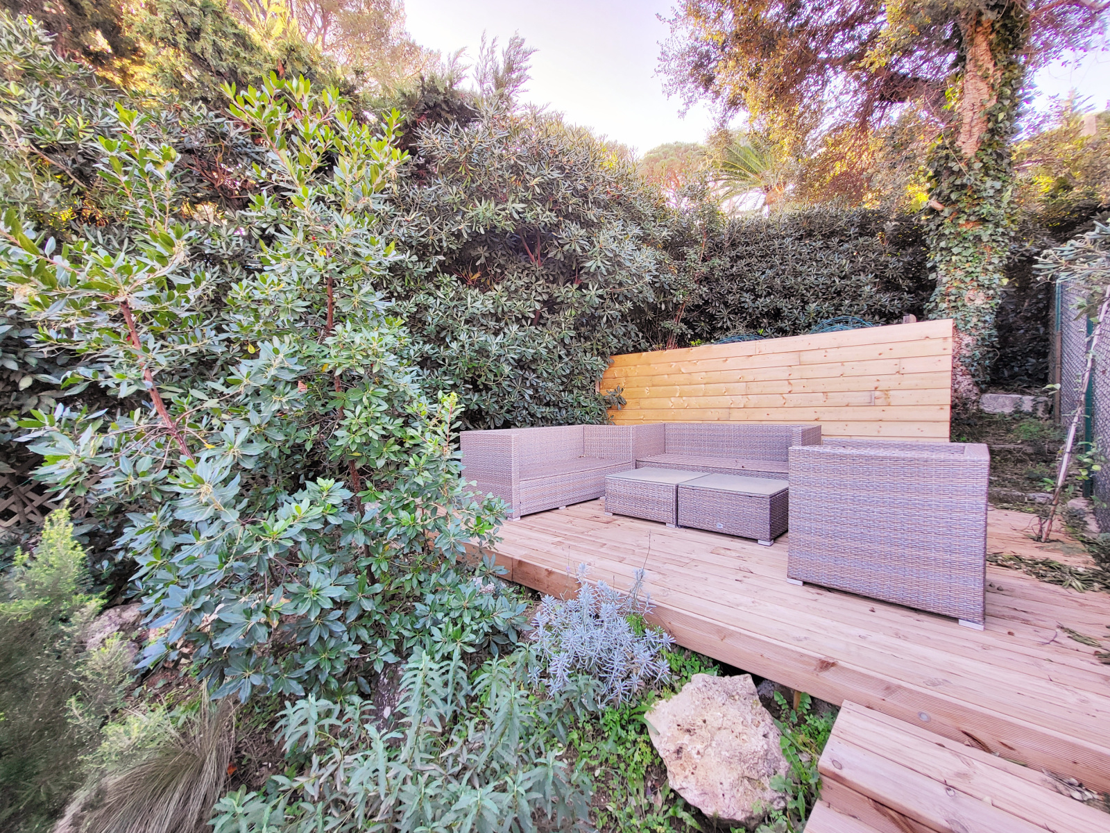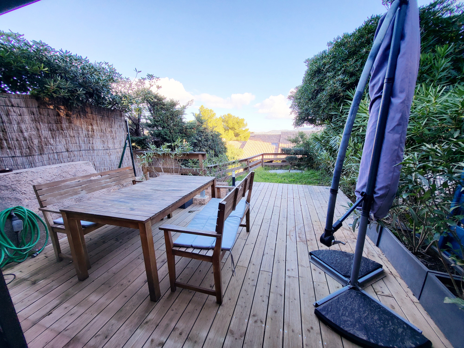 Dans quartier recherché, à proximité du port et de la ville, Mas de 49 m² en parfait état, séjour - cuisine de 21 m² donnant sur belle terrasse dinatoire, cuisine américaine entièrement équipée, salle d'eau, wc indépendant, à l'étage grande chambre donnant sur jardin privatif au sud, vue dégagée verdure, place de parking attribuée.
