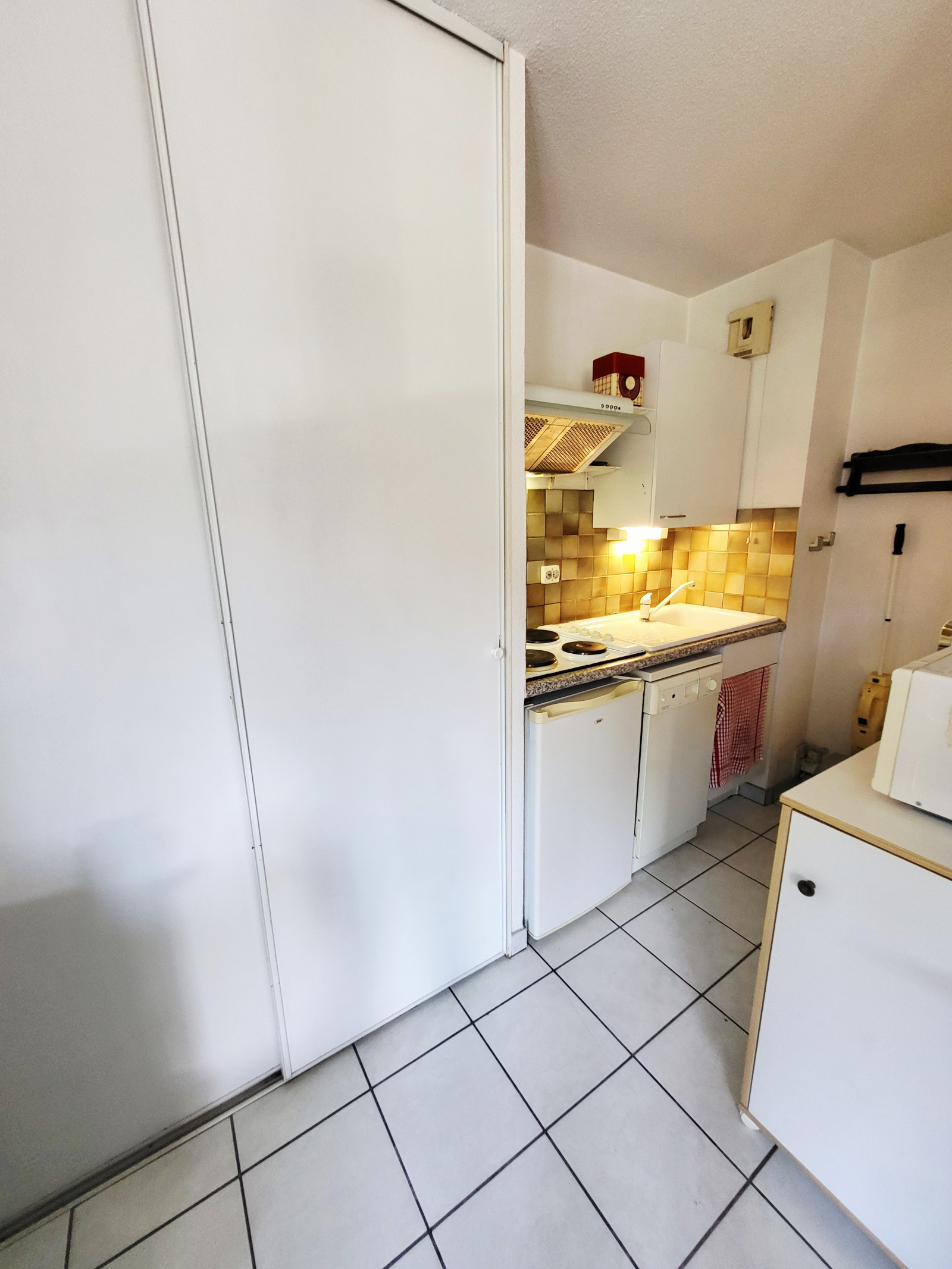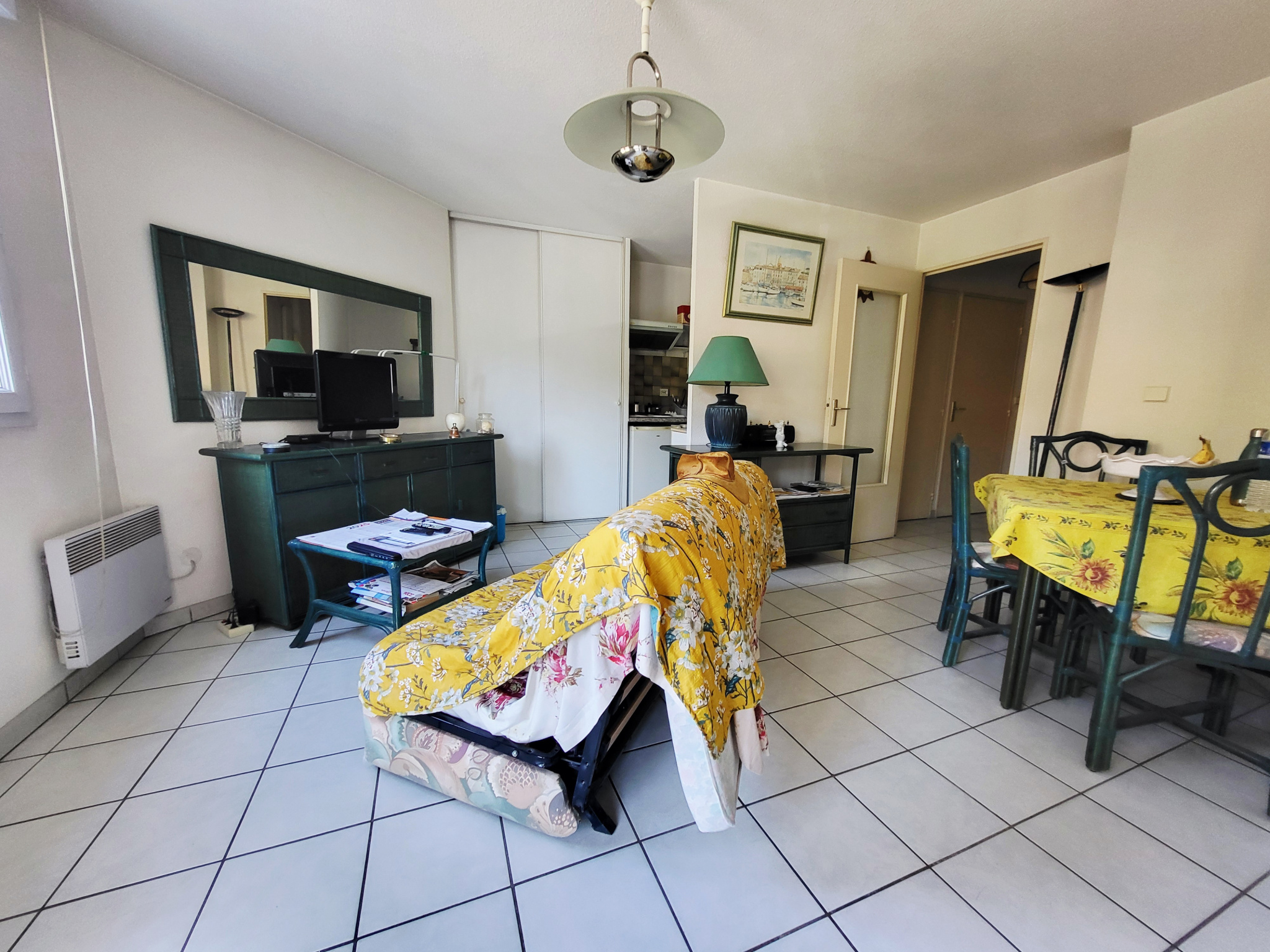 Coeur de Cavalaire, tout à pied, dans une résidence fermée, appartement de type T1 + Cabine, bon état général, séjour + coin cuisine de 20 m² donnant sur balcon dinatoire de 6 m², cabine de 6 m², salle de bain, WC indépendant, vue dégagée, pas de vis à vis, possibilité de se garer à l'arrière de la résidence, possibilité d'acquérir un garage en sus, idéal pour un premier achat ou une résidence secondaire.