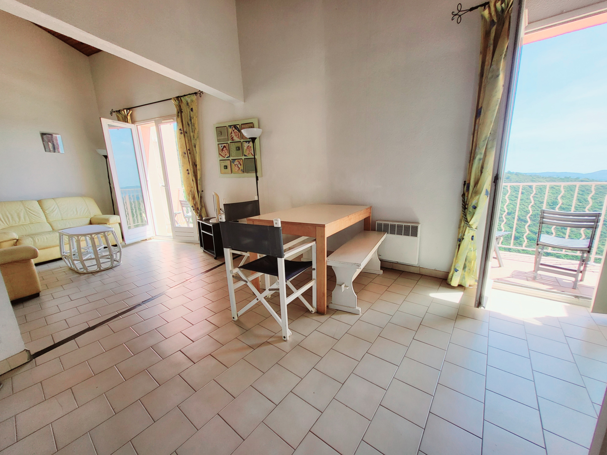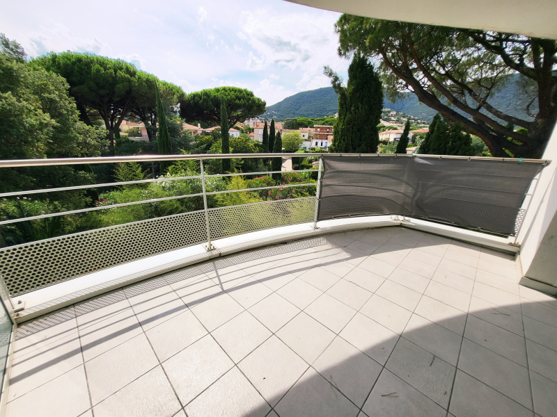 Dans résidence avec piscines, sur les hauteurs de Cavalaire sur mer, au calme absolu, en dernier étage, appartement de type T2 de 62 m² habitable, 45.28 en loi carrez comprenant : un grand séjour de 25 m² donnant sur 2 balcons, coin cuisine équipée, 1 chambre, salle d'eau, wc indépendant, une mezzanine de 16 m² pouvant accueillir plusieurs couchages, vue panoramique mer et verdures, ensoleillé, accès aux 2 piscines, parking privatif, idéal pour votre résidence secondaire !