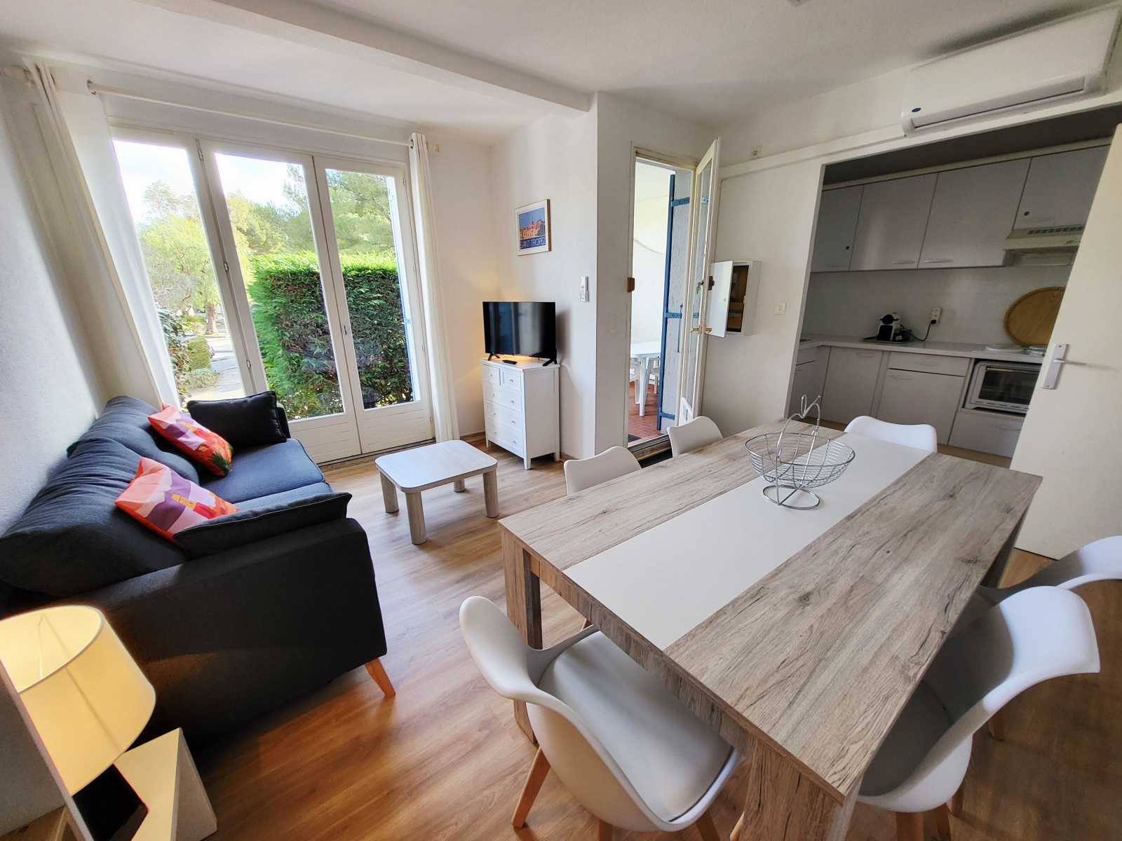 A proximité du centre - ville et du port, appartement de type 2 pièces refait à neuf, comprenant : un séjour donnant sur terrasse dinatoire, une cuisine semi - ouverte entièrement équipée, 1 chambre, 1 salle d'eau, 1 WC indépendant, vue dégagée, cave, parking privatif extérieur, idéal pour vos vacances ou un investissement locatif.