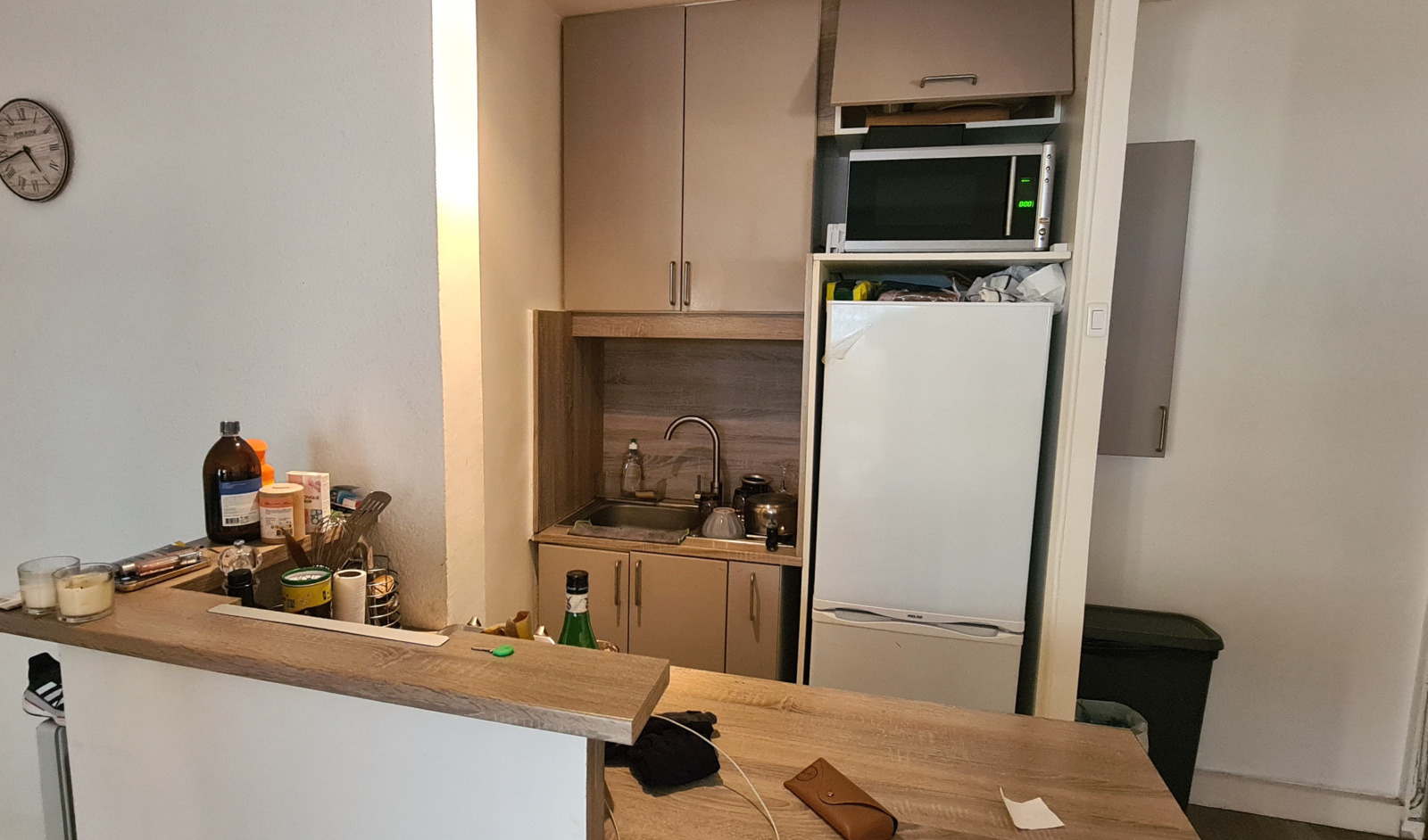 Coeur de ville, appartement de type T2 de 49 m² en très bon état, salon donnant sur terrasse, cuisine ouverte équipée, chambre avec loggia donnant sur cour intérieur, salle d'eau, tout à pied.