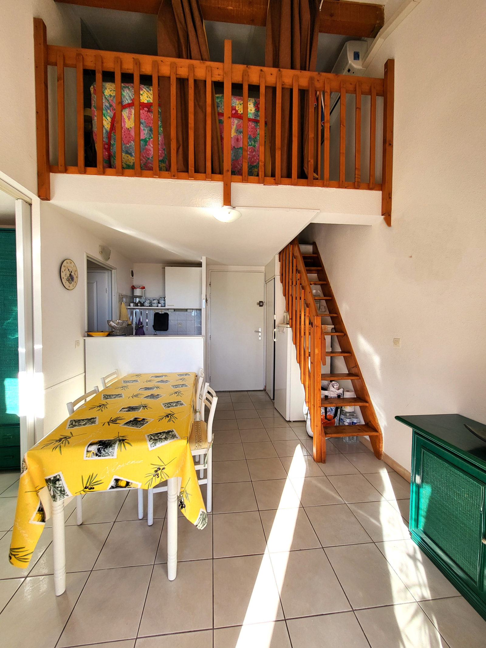 Dans résidence de standing, au calme, appartement en dernier étage de type 2-3 pièces, 35 m², salon donnant sur belle terrasse dinatoire de 11 m², cuisine ouverte équipée, coin chambre en rdc, salle d'eau, toilette indépendant, à l'étage mezzanine avec coint nuit et toilette indépendant, piscine dans la résidence, superbe bue ville et mer, ensoleillé, place de parking privative, idéal pour vos vacances ou un investissement locatif.