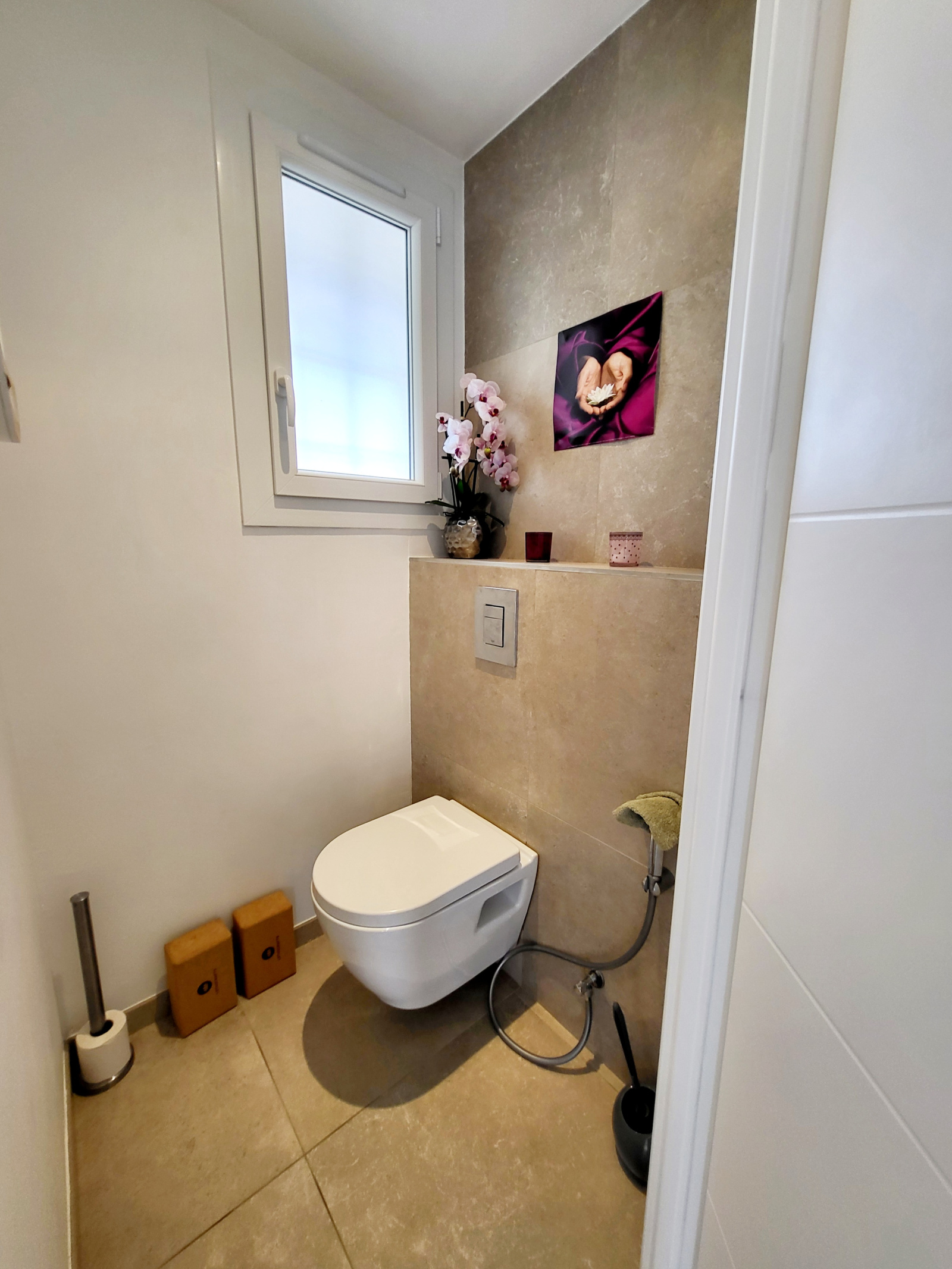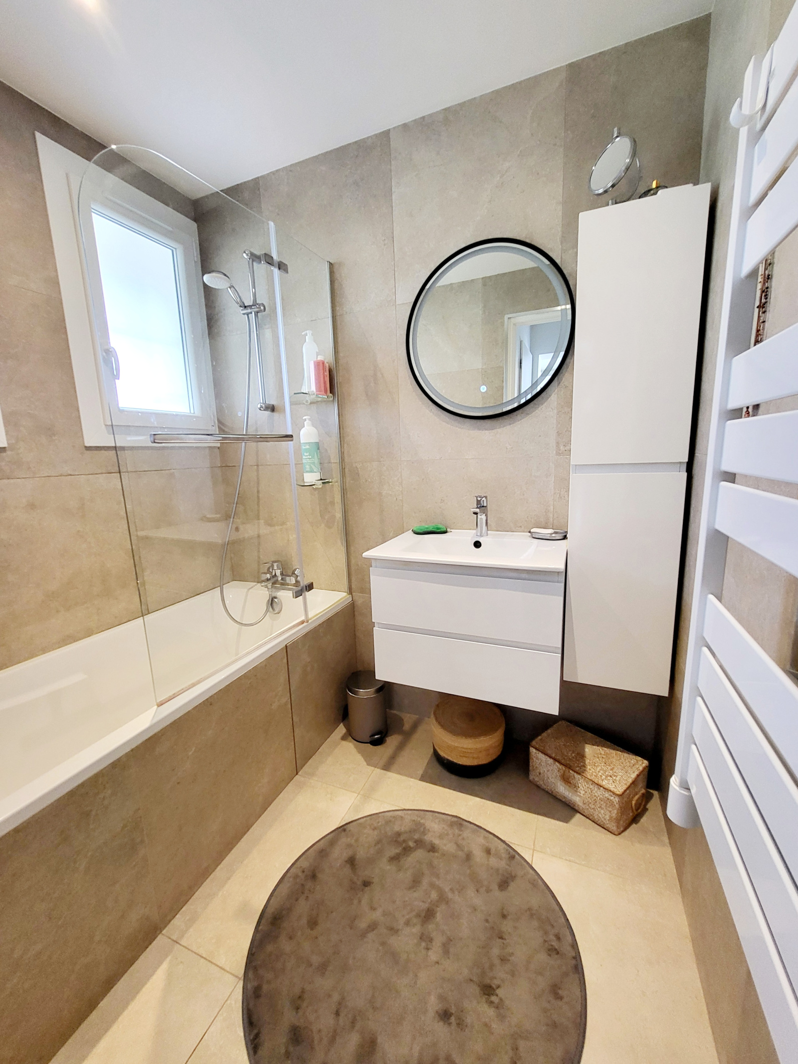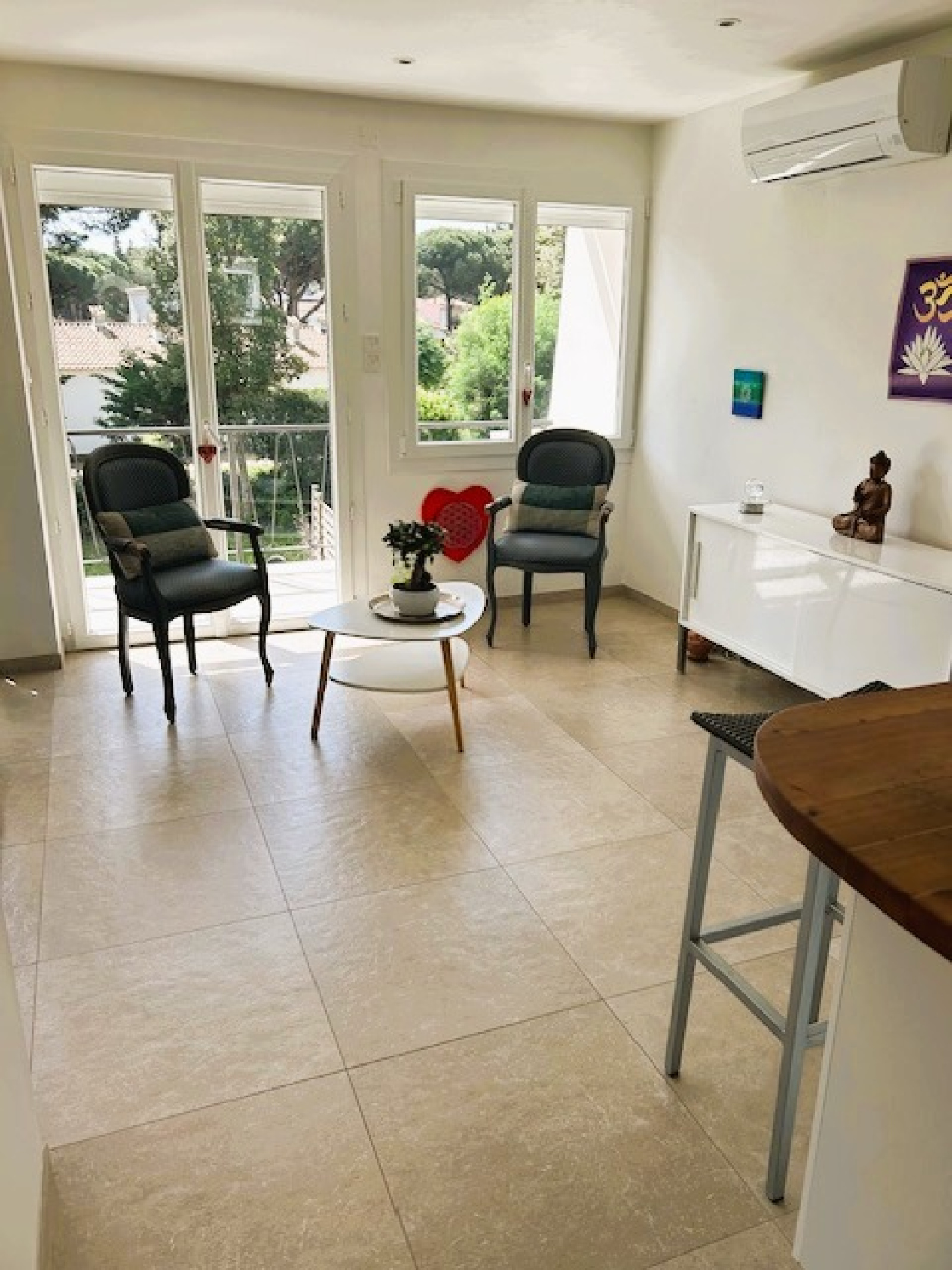 Dans quartier recherché , à deux pas des plages, petite résidence nichée dans un écrin de verdure, dernier étage, appartement de type T2 en excellent état, 36 m², séjour donnant sur balcon, belle cuisine ouverte équipée, chambre donnant sur balcon, salle de bain, wc indépendant, climatisation, store et volets électriques, très calme, vue dégagée sur la verdure, pas de vis - à - vis, parking extérieur, rare à la vente !