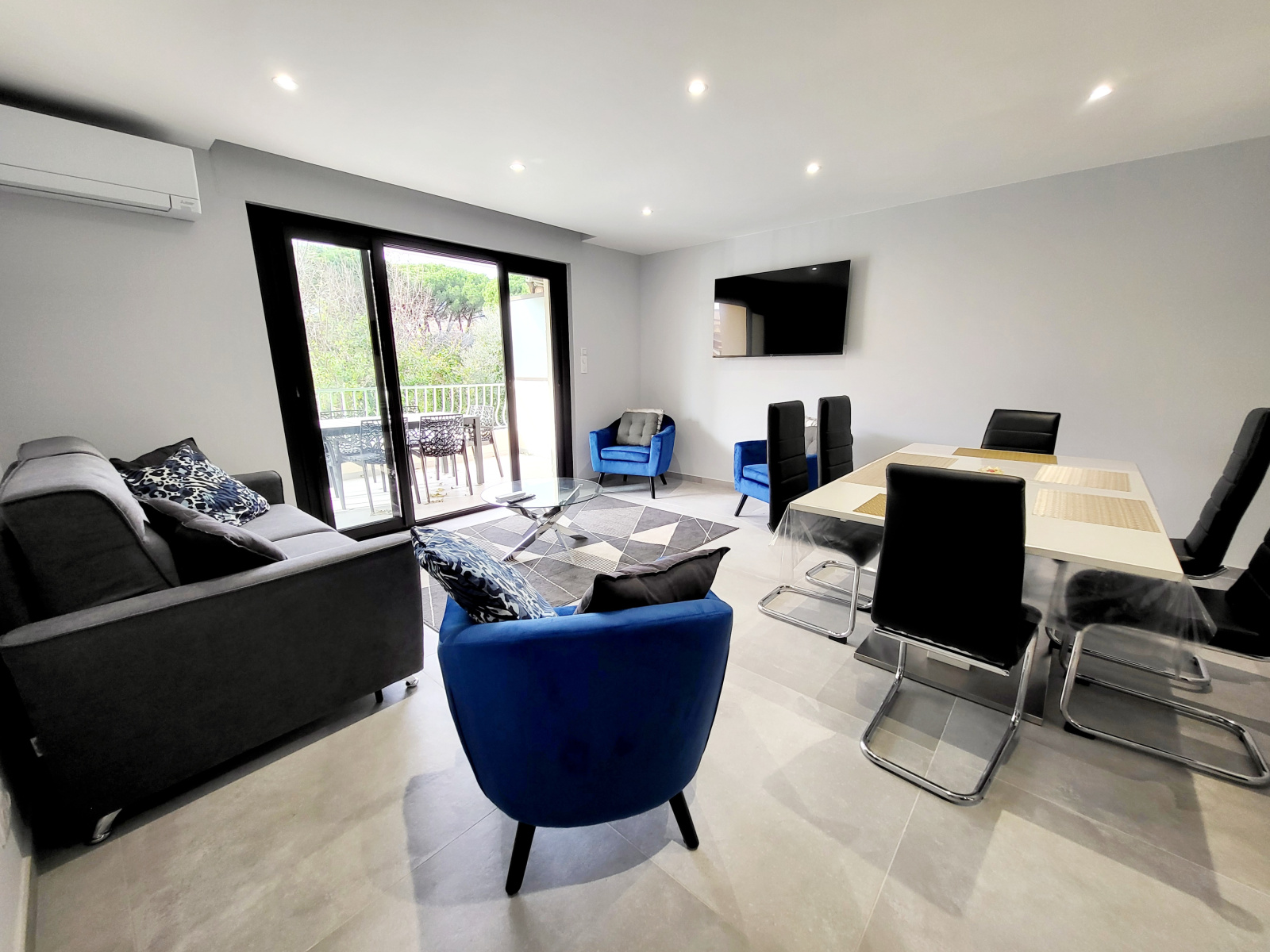 A deux pas des commodités, dans une résidence de standing avec piscine, appartement de type T3 de 66 m² environ refait entièrement à neuf, beaux volumes, séjour donnant sur terrasse au SUD - OUEST, cuisine ouverte équipée, 2 chambres, 1 salle d'eau, WC indépendant, cave, parking privatif extérieur, au calme.