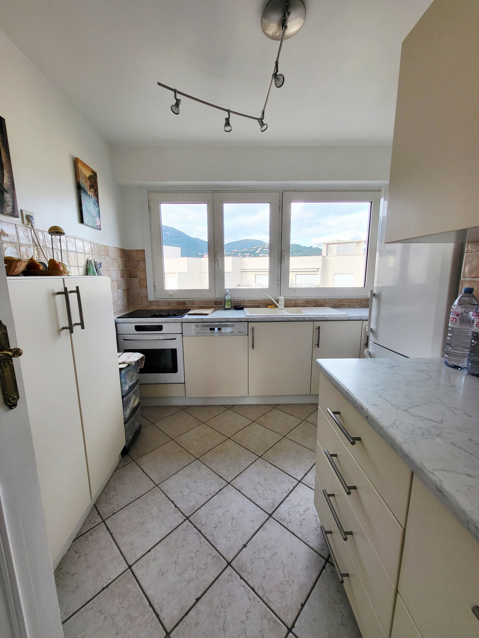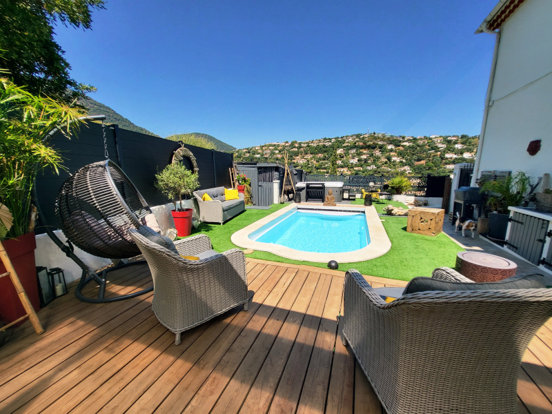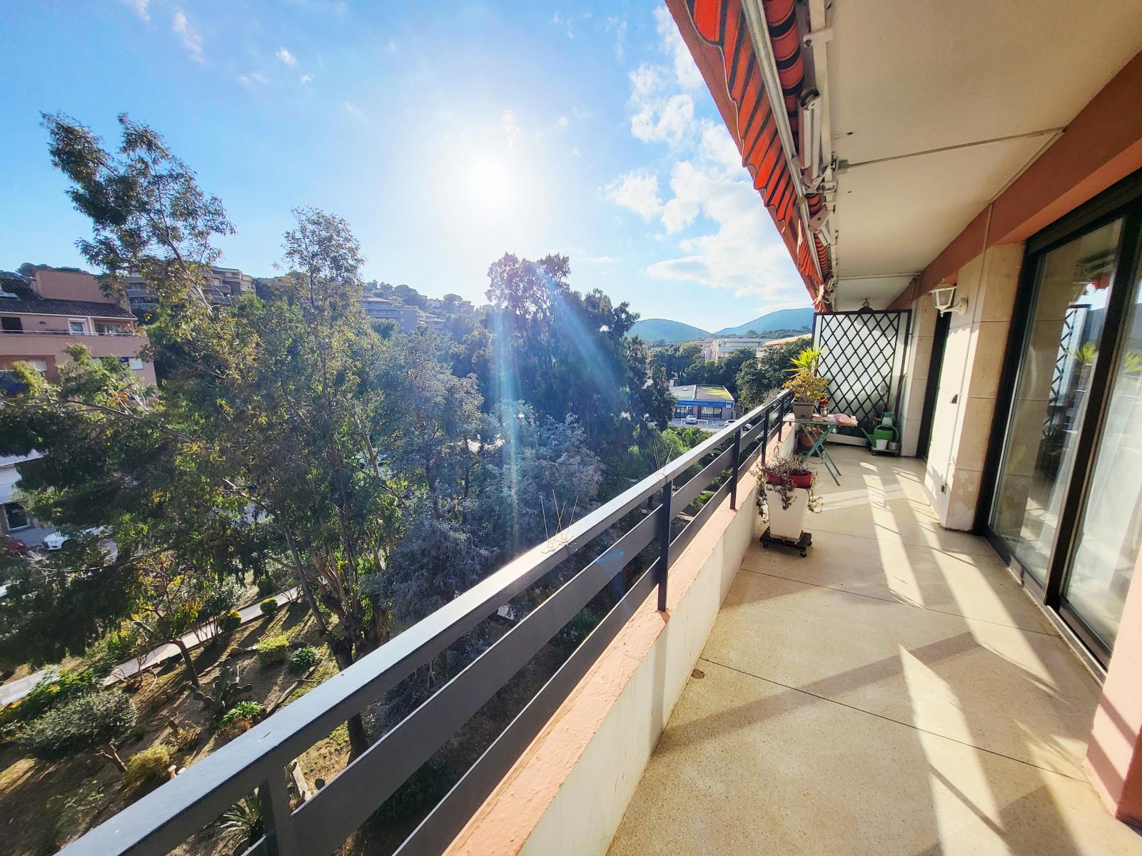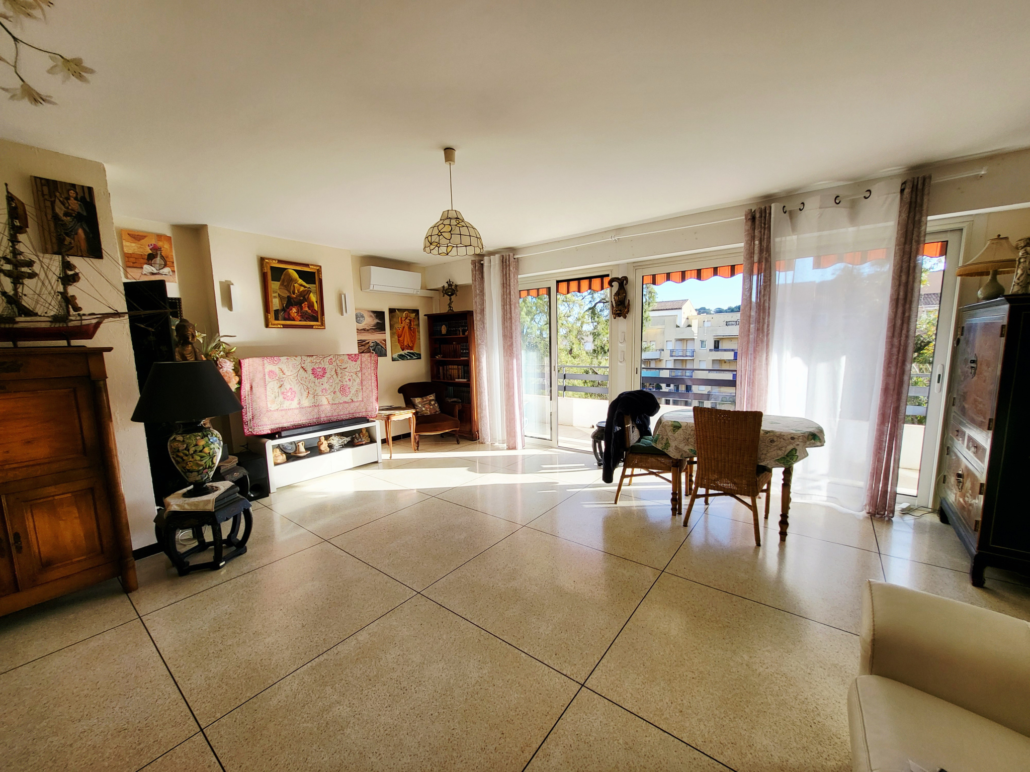 Centre ville, résidence fermée avec parc, en dernier étage, bel appartement de 85 m² comprenant : séjour de 28 m² donnant sur terrasse, une cuisine indépendante équipée, 3 chambres dont une actuellement aménagée en bureau, une salle d'eau refaite à neuve, 1 WC indépendant, une buanderie, exposition SUD - EST, belle vue dégagée sur la verdure et la villa, un box fermé en sous - sol. L'appartement dispose d'une climatisation installée en 2024, de double vitrages ainsi de stores et volets électriques. Beau produit !