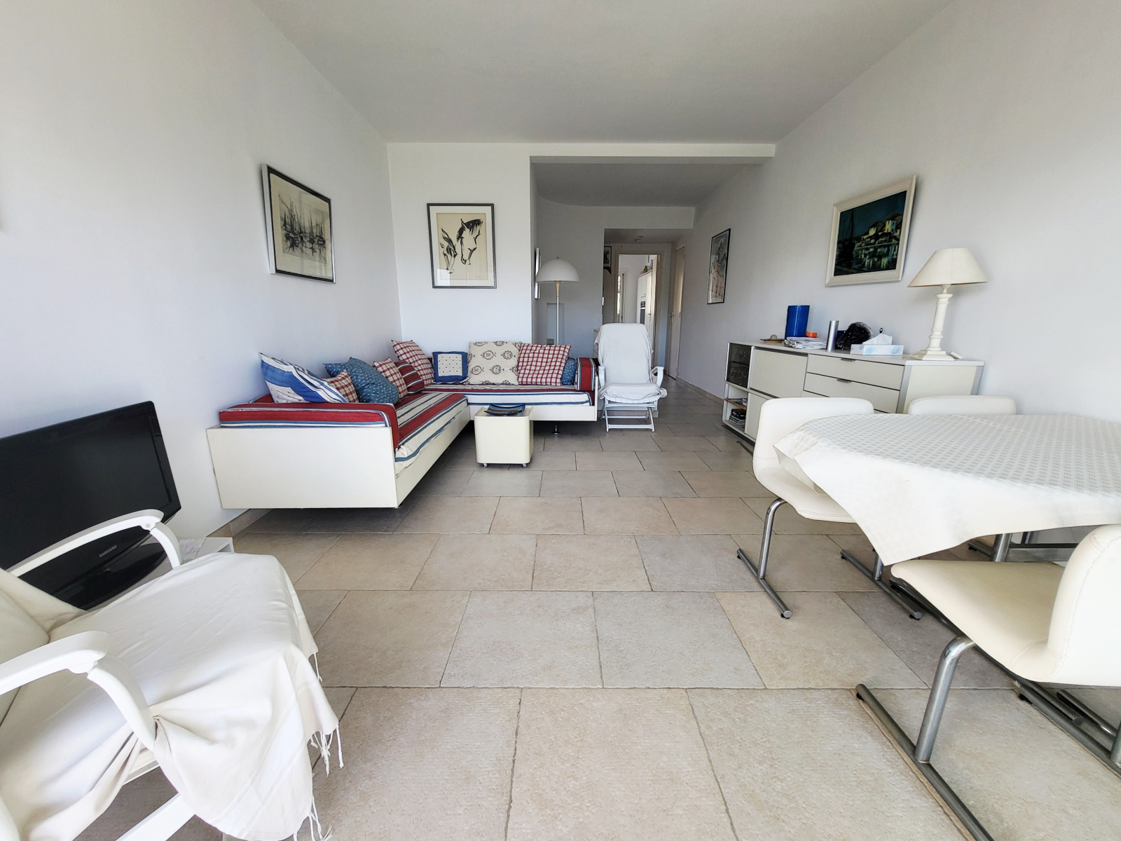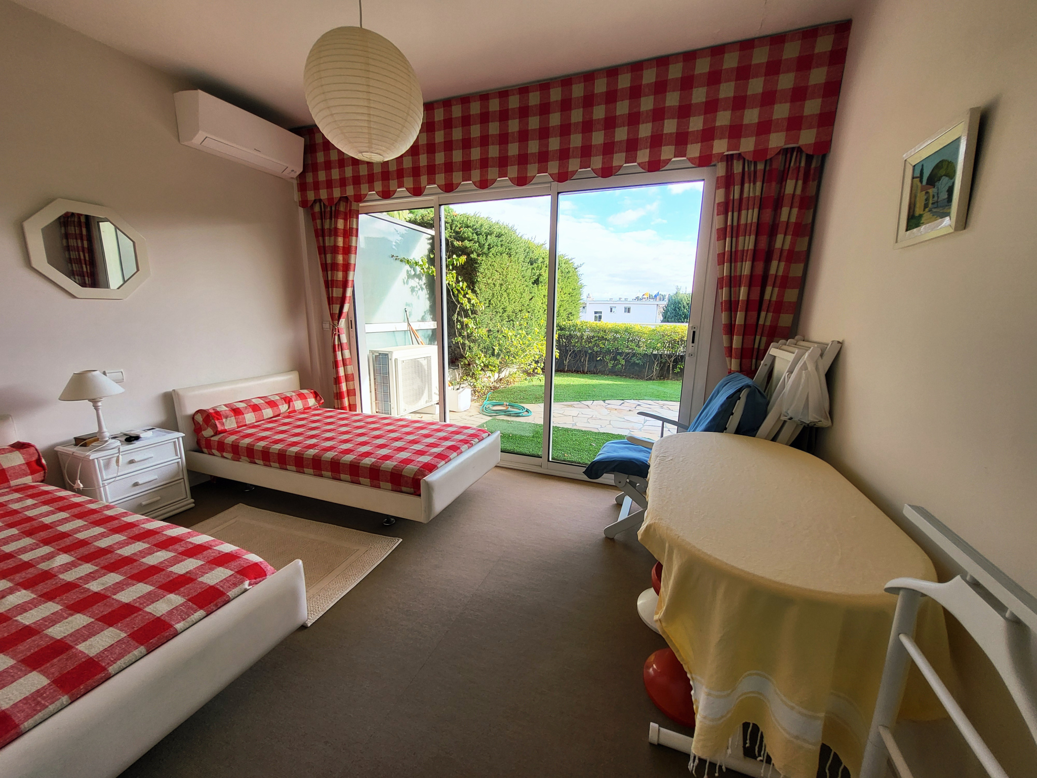 Au coeur de Cavalaire, à deux pas des plages et du port, dans une luxueuse résidence avec un parc et piscine, appartement de type T3 en duplex de 69m² en très bon état, comprenant : au 1er niveau un séjour donnant sur terrasse, cuisine indépendante équipée, 1 wc invité, au niveau du jardin : deux vastes chambres, une salle d'eau, nombreux rangements, jardin privatif suspendu de 45 m², belle vue dégagée avec un bel aperçu mer, cave, place de parking dans l'enceinte de la résidence. L'appartement est climatisé. Beau produit, rare sur le marché !