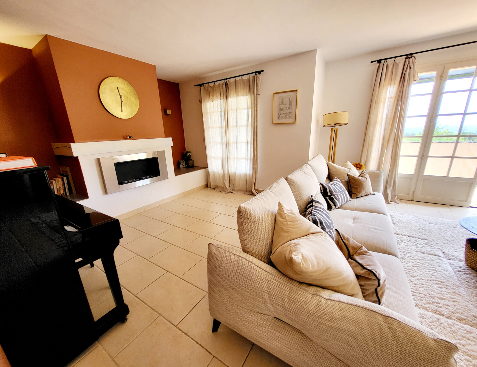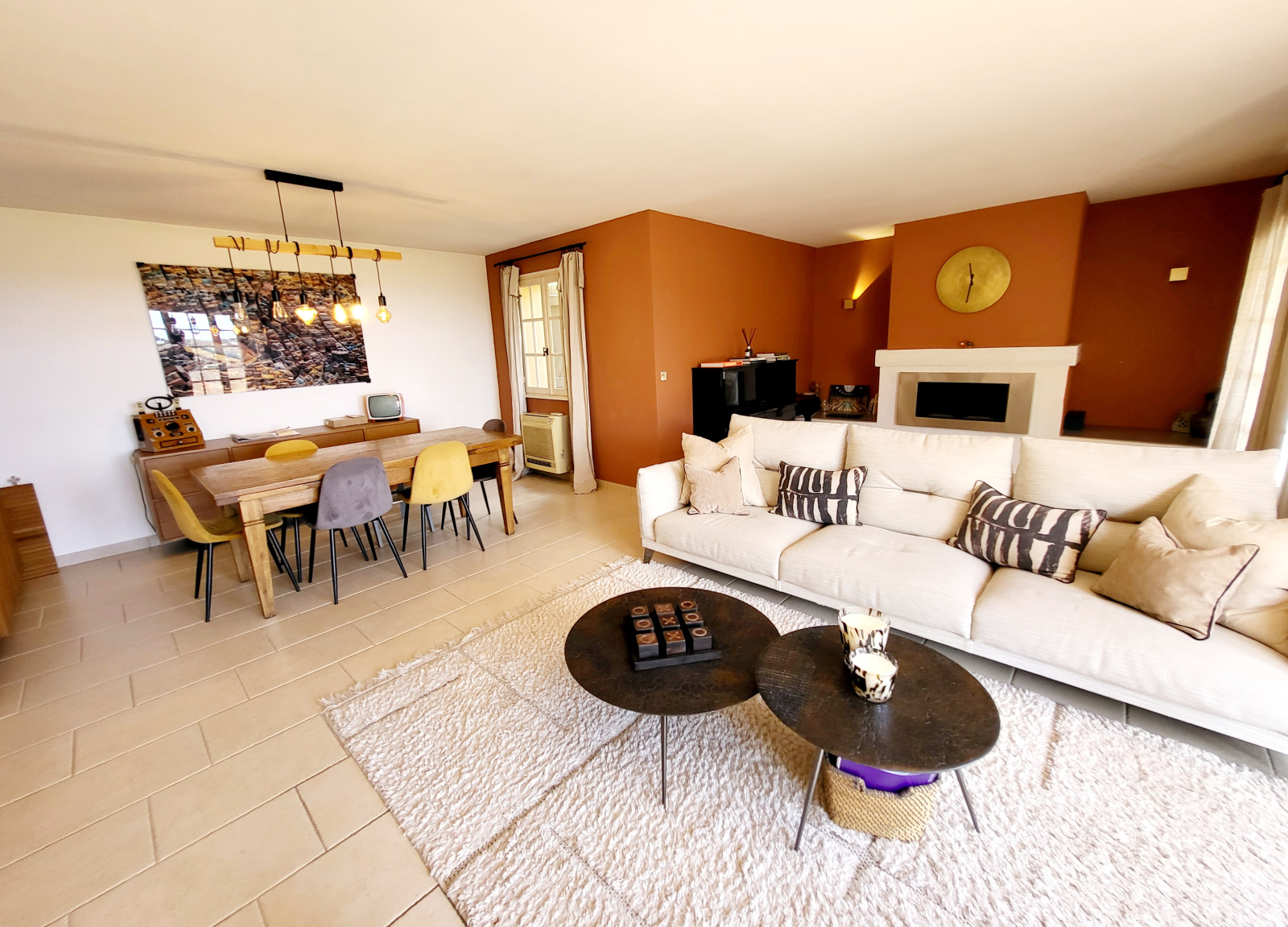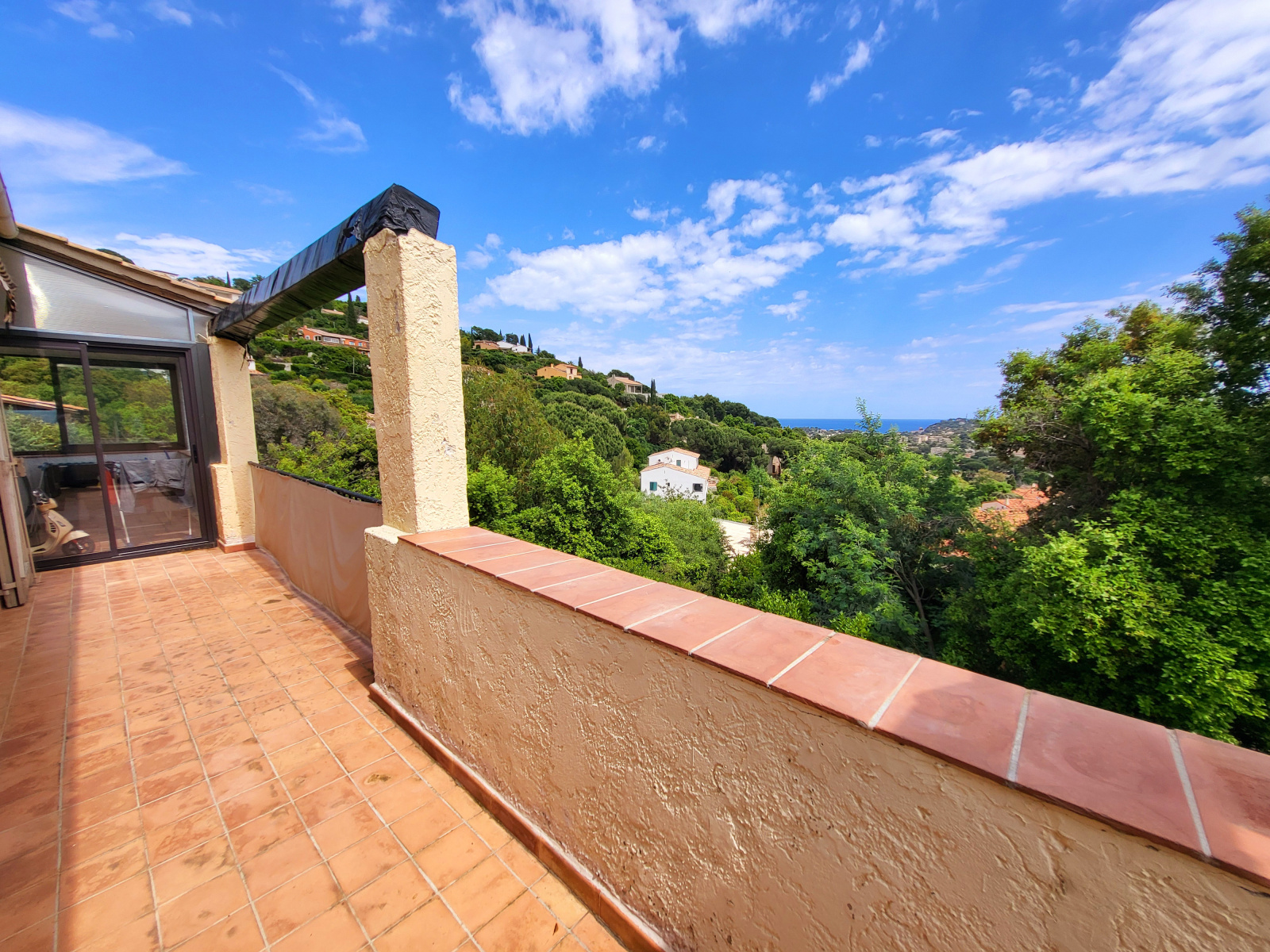 Dans un quartier résidentiel, sur les hauteurs de Cavalaire sur mer, au calme, villa de 170 m² en bon état général reposant sur un terrain de 1 081 m² selon cadastre, comprenant : au 1er niveau : un vaste séjour - salle à manger avec insert de cheminée le tout donnant sur une belle terrasse dinatoire ensoleillée, une belle cuisine indépendante, 2 chambres dont une avec sa salle de bainn attenante, une salle d'eau, un WC invité, le tout en excellent état, très belle vue dégagée sur la mer ainsi que sur les collines avoisinantes. Le 1er niveau est climatisé.